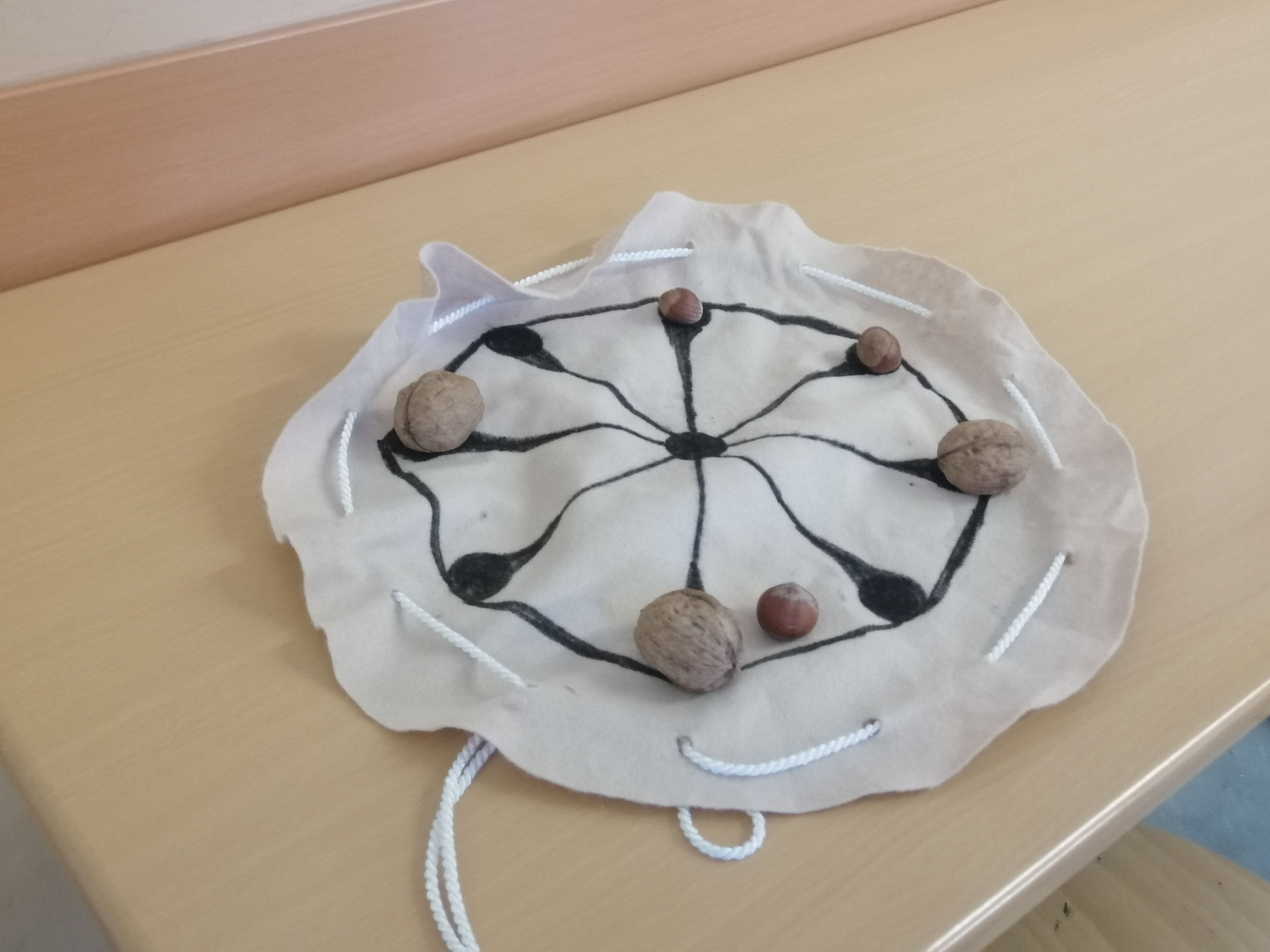 Frau Briesemeister gab ihren Schülern die Möglichkeit, mehr über das Spielen in der Antike zu erfahren und sich selbst vielleicht wie in einer kleinen Olympiade zu fühlen. Neben verschiedenen Ballspielarten – wie dadatim ludere und raptim ludere – spielten die Siebtklässler vor allem wie die römischen Legionäre mola rotunda. Hierbei handelt es sich um eine Variante des Spiels Mühle, das traditionell mit Nüssen und einem Spielfeld aus Tierleder gespielt wird. Ein „Sorry an alle Veganer“ konnte sich dabei ein Schüler nicht verkneifen.